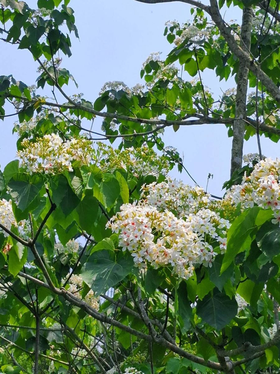 民宿周圍的油桐樹,在這個季節慢慢開花、飄落,